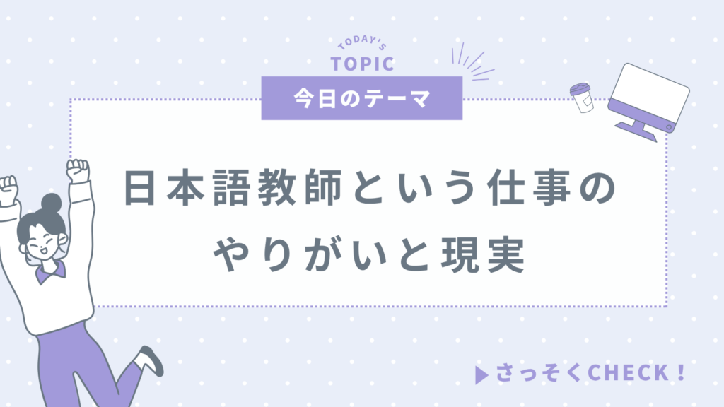 この記事では、日本語教師としてのやりがいと現実の両方に目を向けながら、この仕事の本質について話してみたいと思います。