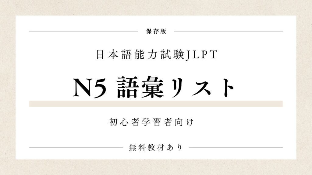 JLPT N5レベルで押さえておきたい基本語彙を整理した単語リストを作ってみました。